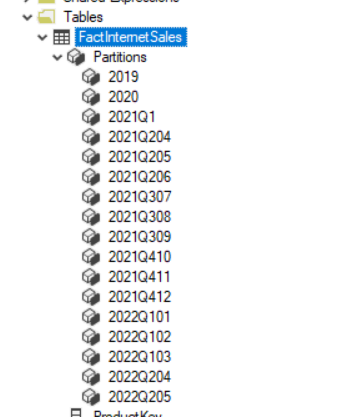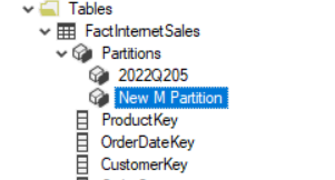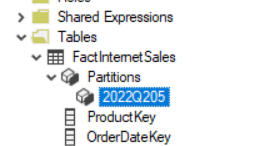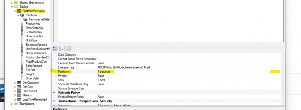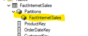 Select the FactInternetSales then in the properties look for partitions where it says 1 partition click on the Three ellipsis dots.